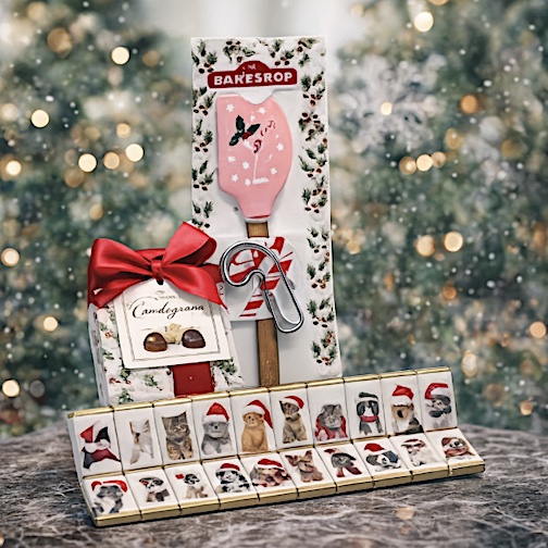 Are these the cutest ever? Bite size Chocolates with pix of dogs and cats all dressed up and waiting for Santa! Plus let's send the 'baker' some new toys to create Christmas Cookies for Santa too!